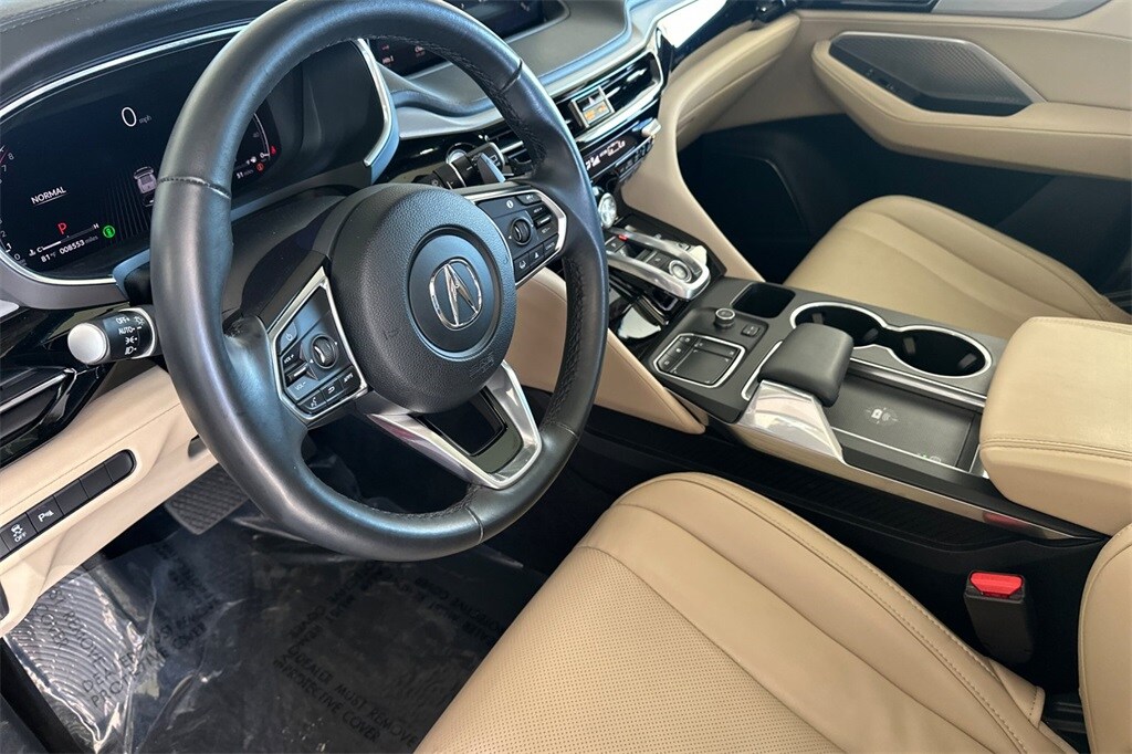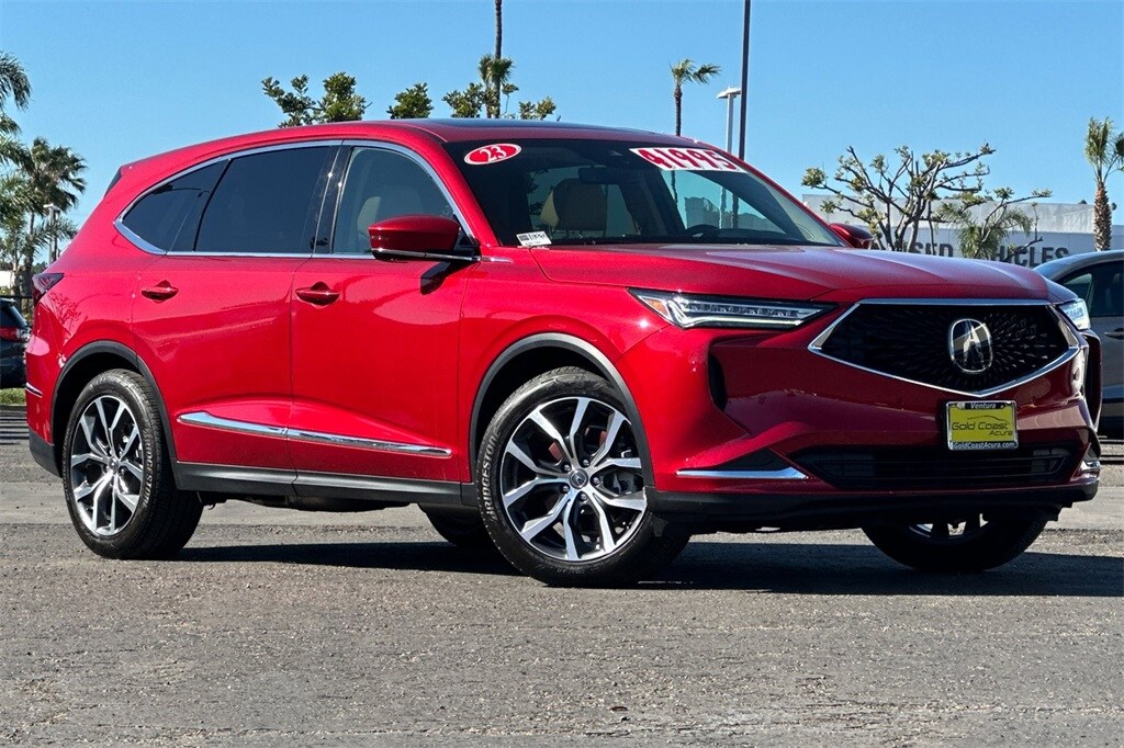 This 2023 Red Acura MDX Technology FWD is well equipped and includes these features and benefits: Precision Certified Certified, Tan Leather, 12 Speakers, 3rd row seats: split-bench, 4-Wheel Disc Brakes, 4.17 Axle Ratio, A/V remote: CabinControl, ABS brakes, Air Conditioning, Alloy wheels, AM/FM radio: SiriusXM, Anti-whiplash front head restraints, Apple CarPlay/Android Auto, Audio memory, Auto High-beam Headlights, Auto tilt-away steering wheel, Auto-dimming Rear-View mirror, Automatic temperature control, Brake assist, Bumpers: body-color, Compass, Delay-off headlights, Driver door bin, Driver vanity mirror, Dual front impact airbags, Dual front side impact airbags, Electronic Stability Control, Emergency communication system: AcuraLink, Exterior Parking Camera Rear, Four wheel independent suspension, Front anti-roll bar, Front Bucket Seats, Front Center Armrest, Front dual zone A/C, Front reading lights, Fully automatic headlights, Garage door transmitter: HomeLink, Heated door mirrors, Heated front seats, Heated Front Sport Seats, HVAC memory, Illuminated entry, Knee airbag, Lane departure: Lane Keeping Assist System (LKAS) active, Leather steering wheel, Low tire pressure warning, Memory seat, Navigation system: Acura Navigation System with 3D View, Occupant sensing airbag, Outside temperature display, Overhead airbag, Overhead console, Panic alarm, Passenger door bin, Passenger vanity mirror, Perforated Premium Milano Leather Trimmed Seats, Power door mirrors, Power driver seat, Power Liftgate, Power moonroof, Power passenger seat, Power steering, Power windows, Premium audio system: Acura/ELS Surround, Radio data system, Radio: ELS Studio Premium Audio System, Rain sensing wipers, Rear air conditioning, Rear anti-roll bar, Rear reading lights, Rear seat center armrest, Rear window defroster, Rear window wiper, Remote keyless entry, Security system, Speed control, Speed-sensing steering, Speed-Sensitive Wipers, Split folding rear seat, Spoiler, Steering wheel memory, Steering wheel mounted audio controls, Tachometer, Telescoping steering wheel, Tilt steering wheel, Traction control, Trip computer, Turn signal indicator mirrors, Variably intermittent wipers, and Wheels: 20" x 9" Aluminum Alloy. Tan Leather.