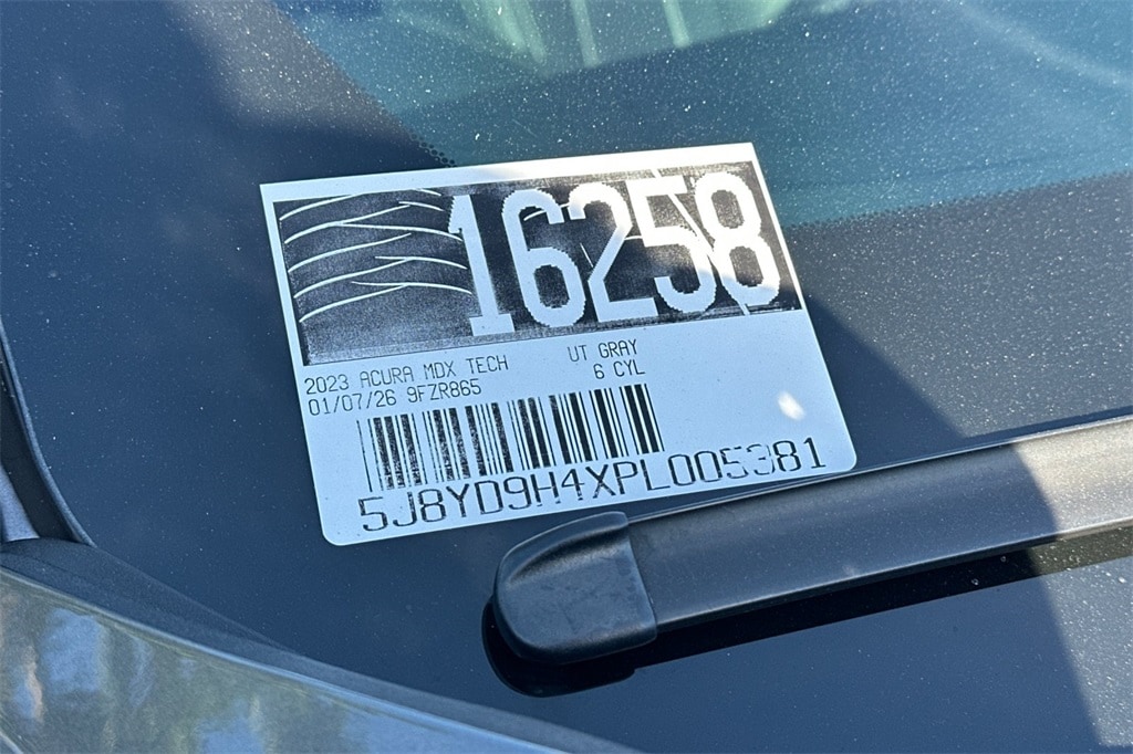 This 2023 Gray Acura MDX Technology FWD is well equipped and includes these features and benefits: Precision Certified Certified, Black Leather, 12 Speakers, 3rd row seats: split-bench, 4-Wheel Disc Brakes, 4.17 Axle Ratio, A/V remote: CabinControl, ABS brakes, Air Conditioning, Alloy wheels, AM/FM radio: SiriusXM, Anti-whiplash front head restraints, Apple CarPlay/Android Auto, Audio memory, Auto High-beam Headlights, Auto tilt-away steering wheel, Auto-dimming Rear-View mirror, Automatic temperature control, Brake assist, Bumpers: body-color, Compass, Delay-off headlights, Driver door bin, Driver vanity mirror, Dual front impact airbags, Dual front side impact airbags, Electronic Stability Control, Emergency communication system: AcuraLink, Exterior Parking Camera Rear, Four wheel independent suspension, Front anti-roll bar, Front Bucket Seats, Front Center Armrest, Front dual zone A/C, Front reading lights, Fully automatic headlights, Garage door transmitter: HomeLink, Heated door mirrors, Heated front seats, Heated Front Sport Seats, HVAC memory, Illuminated entry, Knee airbag, Lane departure: Lane Keeping Assist System (LKAS) active, Leather steering wheel, Low tire pressure warning, Memory seat, Navigation system: Acura Navigation System with 3D View, Occupant sensing airbag, Outside temperature display, Overhead airbag, Overhead console, Panic alarm, Passenger door bin, Passenger vanity mirror, Perforated Premium Milano Leather Trimmed Seats, Power door mirrors, Power driver seat, Power Liftgate, Power moonroof, Power passenger seat, Power steering, Power windows, Premium audio system: Acura/ELS Surround, Radio data system, Radio: ELS Studio Premium Audio System, Rain sensing wipers, Rear air conditioning, Rear anti-roll bar, Rear reading lights, Rear seat center armrest, Rear window defroster, Rear window wiper, Remote keyless entry, Security system, Speed control, Speed-sensing steering, Speed-Sensitive Wipers, Split folding rear seat, Spoiler, Steering wheel memory, Steering wheel mounted audio controls, Tachometer, Telescoping steering wheel, Tilt steering wheel, Traction control, Trip computer, Turn signal indicator mirrors, Variably intermittent wipers, and Wheels: 20" x 9" Aluminum Alloy. Black Leather.