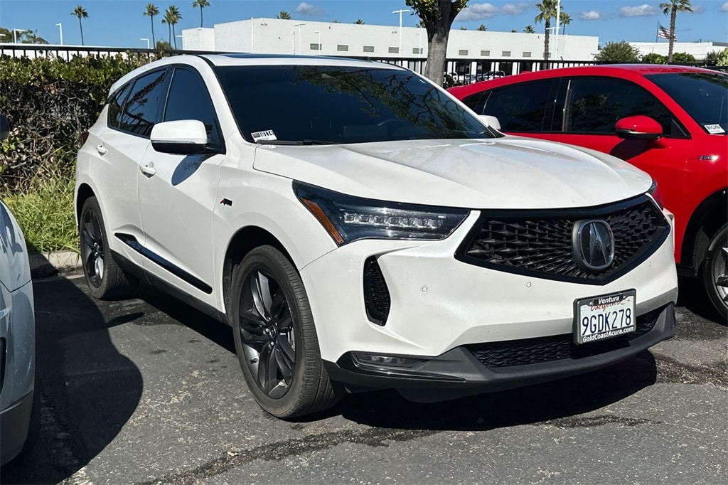 This 2023 Platinum White Acura RDX A-Spec AWD is well equipped and includes these features and benefits: Precision Certified Certified, AWD, 16 Speakers, 4-Wheel Disc Brakes, 4.17 Axle Ratio, ABS brakes, Air Conditioning, Alloy wheels, AM/FM radio: SiriusXM, Apple CarPlay/Android Auto, Auto High-beam Headlights, Auto-dimming Rear-View mirror, Automatic temperature control, Brake assist, Bumpers: body-color, Compass, Delay-off headlights, Driver door bin, Driver vanity mirror, Dual front impact airbags, Dual front side impact airbags, Electronic Stability Control, Emergency communication system: AcuraLink, Exterior Parking Camera Rear, Four wheel independent suspension, Front anti-roll bar, Front Bucket Seats, Front Center Armrest, Front dual zone A/C, Front fog lights, Front reading lights, Fully automatic headlights, Garage door transmitter: HomeLink, Heated & Ventilated Front Sport Seats, Heated door mirrors, Heated front seats, Illuminated entry, Knee airbag, Lane departure: Lane Keeping Assist System (LKAS) active, Low tire pressure warning, Memory seat, Navigation system: Acura Navigation System with 3D View, Occupant sensing airbag, Outside temperature display, Overhead airbag, Overhead console, Panic alarm, Passenger door bin, Passenger vanity mirror, Perforated Milano Premium Leather-Trimmed Interior, Power door mirrors, Power driver seat, Power Liftgate, Power moonroof, Power passenger seat, Power steering, Power windows, Premium audio system: Acura/ELS Studio 3D, Radio data system, Radio: ELS Studio 3D Premium Audio System, Rear anti-roll bar, Rear reading lights, Rear seat center armrest, Rear window defroster, Rear window wiper, Remote keyless entry, Security system, Speed control, Speed-sensing steering, Split folding rear seat, Spoiler, Sport steering wheel, Steering wheel mounted audio controls, Tachometer, Telescoping steering wheel, Tilt steering wheel, Traction control, Trip computer, Turn signal indicator mirrors, Variably intermittent wipers, Ventilated front seats, and Wheels: 20" x 8.0J Shark Gray Split 5-Spoke. AWD.