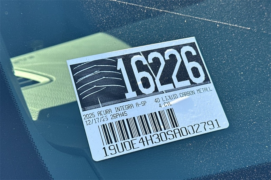 Recent Arrival! This 2025 Carbon Acura Integra A-Spec Package FWD is well equipped and includes these features and benefits: 18" Aluminum Alloy Wheels, 4-Wheel Disc Brakes, 8 Speakers, ABS brakes, Air Conditioning, Alloy wheels, AM/FM radio, Apple CarPlay/Android Auto, Auto High-beam Headlights, Auto-dimming Rear-View mirror, Automatic temperature control, Brake assist, Bumpers: body-color, Compass, Delay-off headlights, Driver door bin, Driver vanity mirror, Dual front impact airbags, Dual front side impact airbags, Electronic Stability Control, Four wheel independent suspension, Front anti-roll bar, Front Bucket Seats, Front Center Armrest, Front dual zone A/C, Front fog lights, Front reading lights, Fully automatic headlights, Heated door mirrors, Heated Front Bucket Seats, Heated front seats, Illuminated entry, Knee airbag, Lane departure: Lane Keeping Assist System (LKAS) active, Leather Shift Knob, Leather steering wheel, Leatherette-Trimmed Seating Surfaces, Low tire pressure warning, Occupant sensing airbag, Outside temperature display, Overhead airbag, Overhead console, Panic alarm, Passenger door bin, Passenger vanity mirror, Power door mirrors, Power driver seat, Power moonroof, Power steering, Power windows, Radio data system, Radio: Acura Premium Audio System, Rear anti-roll bar, Rear seat center armrest, Rear side impact airbag, Rear window defroster, Remote keyless entry, Security system, Speed control, Speed-sensing steering, Speed-Sensitive Wipers, Split folding rear seat, Spoiler, Steering wheel mounted audio controls, Tachometer, Telescoping steering wheel, Tilt steering wheel, Traction control, Trip computer, and Variably intermittent wipers.