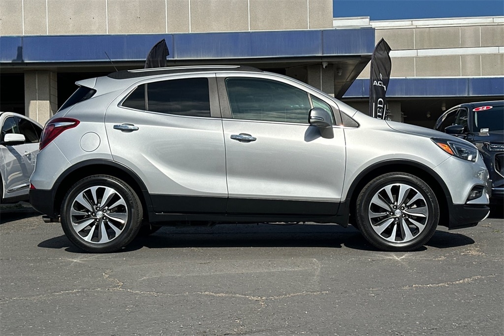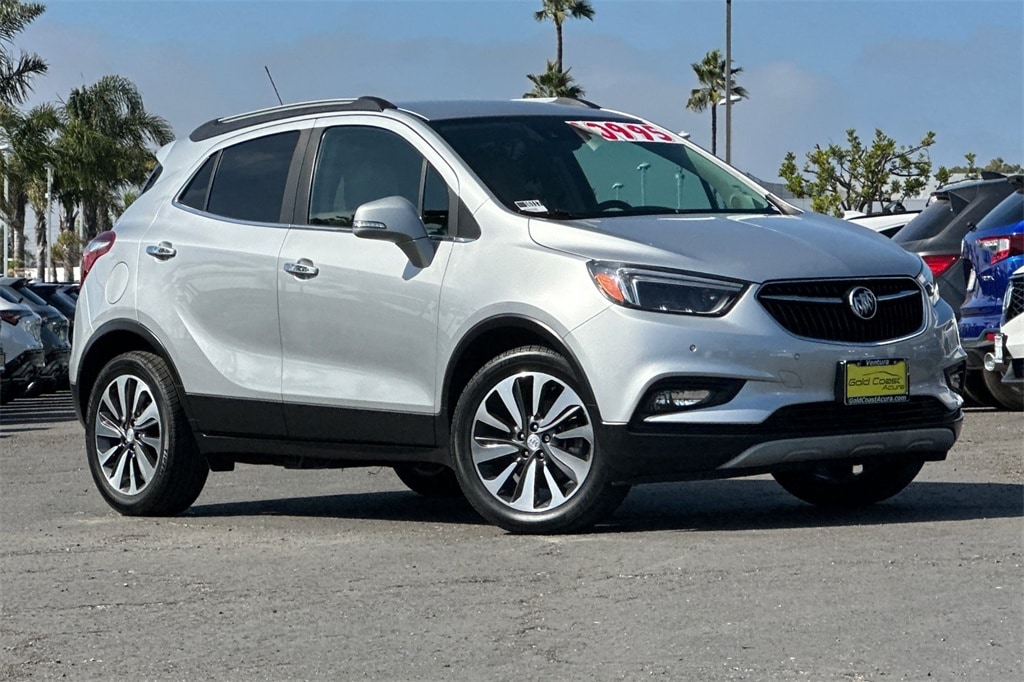 This 2017 Quicksilver Metallic Buick Encore Premium FWD is well equipped and includes these features and benefits: Preferred Equipment Group 1SN (Bose Premium 7-Speaker Audio System w/Amplifier, Carpeted Rear Cargo Mat, Forward Collision Alert, Lane Departure Warning System, Rainsense Intermittent Front Wipers, Rear Cargo Net, and Ultrasonic Front & Rear Park Assist), 18" Aluminum Wheels, 3.53 Final Drive Axle Ratio, 4-Wheel Disc Brakes, 6-Way Power Driver Seat Adjuster, 6-Way Power Front Passenger Seat Adjuster, 7 Speakers, ABS brakes, Air Conditioning, Alloy wheels, AM/FM radio: SiriusXM, Apple CarPlay/Android Auto, Auto-dimming Rear-View mirror, Automatic temperature control, Black Carbon Metallic Lower Exterior Accent Color, Brake assist, Bumpers: body-color, Compass, Delay-off headlights, Driver door bin, Driver vanity mirror, Driver's Seat Mounted Armrest, Dual front impact airbags, Dual front side impact airbags, Electronic Stability Control, Emergency communication system: OnStar Guidance, Exterior Parking Camera Rear, Front anti-roll bar, Front Bucket Seats, Front dual zone A/C, Front fog lights, Front reading lights, Front wheel independent suspension, Fully automatic headlights, Garage door transmitter, Heated door mirrors, Heated Driver & Front Passenger Seats, Heated front seats, Heated steering wheel, Illuminated entry, Knee airbag, Leather-Appointed Seat Trim, Low tire pressure warning, Memory seat, Occupant sensing airbag, Outside temperature display, Overhead airbag, Panic alarm, Passenger door bin, Passenger vanity mirror, Power door mirrors, Power driver seat, Power passenger seat, Power steering, Power windows, Premium audio system: IntelliLink, Radio data system, Radio: Buick IntelliLink AM/FM Stereo, Rain sensing wipers, Rear seat center armrest, Rear side impact airbag, Rear window defroster, Rear window wiper, Remote keyless entry, Ride & Handling Suspension, Roof rack: rails only, Security system, SiriusXM Satellite Radio, Speed control, Speed-sensing steering, Split folding rear seat, Spoiler, Steering wheel mounted audio controls, Tachometer, Telescoping steering wheel, Tilt steering wheel, Traction control, Trip computer, Turn signal indicator mirrors, and Variably intermittent wipers.
