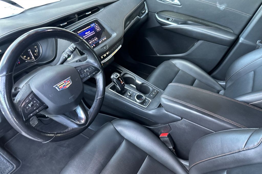 This 2019 Stellar Black Metallic Cadillac XT4 Sport FWD is well equipped and includes these features and benefits: Preferred Equipment Group 1SF (4.2" Diagonal Color Display Driver Info Center, 6-Way Power Passenger Seat Adjuster, Auto-Dimming Inside Rear-View Mirror, Body-Color Heated Power-Adjustable Outside Mirrors, Electronic Cruise Control w/Set & Resume Speed, Front & Rear Park Assist, HD Rear Vision Camera, Manual Rake & Telescopic Steering Column, and Power Rear Liftgate), 20" Twin 5-Spoke Alloy Wheels, 3.47 Axle Ratio, 4-Way Driver Seat Power Lumbar Control, 4-Way Passenger Seat Power Lumbar Control, 4-Wheel Disc Brakes, 7 Speakers, 7-Speaker Audio System w/Auxiliary Amplifier, 8-Way Power Driver Seat Adjuster, ABS brakes, Air Conditioning, Alloy wheels, AM/FM radio: SiriusXM, Apple CarPlay/Android Auto, Auto-dimming door mirrors, Auto-dimming Rear-View mirror, Automatic temperature control, Brake assist, Bumpers: body-color, Compass, Delay-off headlights, Driver door bin, Driver vanity mirror, Dual front impact airbags, Dual front side impact airbags, Electronic Stability Control, Emergency communication system: OnStar and Cadillac connected services capable, Exterior Parking Camera Rear, Four wheel independent suspension, Front anti-roll bar, Front Bucket Seats, Front Center Armrest, Front dual zone A/C, Front License Plate Bracket, Front reading lights, Fully automatic headlights, Garage door transmitter, Heated door mirrors, Illuminated entry, Knee airbag, Leather Shift Knob, Leather steering wheel, Leatherette Seating Surfaces, Low tire pressure warning, Memory seat, Occupant sensing airbag, Outside temperature display, Overhead airbag, Overhead console, Panic alarm, Passenger door bin, Passenger vanity mirror, Power door mirrors, Power driver seat, Power Liftgate, Power passenger seat, Power steering, Power windows, Radio data system, Radio: Cadillac User Experience AM/FM Stereo, Rain sensing wipers, Rear anti-roll bar, Rear reading lights, Rear seat center armrest, Rear window defroster, Rear window wiper, Remote keyless entry, Roof rack: rails only, Security system, SiriusXM Radio, Speed control, Speed-sensing steering, Split folding rear seat, Spoiler, Sport steering wheel, Standard Suspension, Steering wheel mounted audio controls, Tachometer, Telescoping steering wheel, Tilt steering wheel, Traction control, Trip computer, Variably intermittent wipers, Voltmeter, and Wheels: 18" 10-Spoke Diamond Cut/Argent Met Alloy.