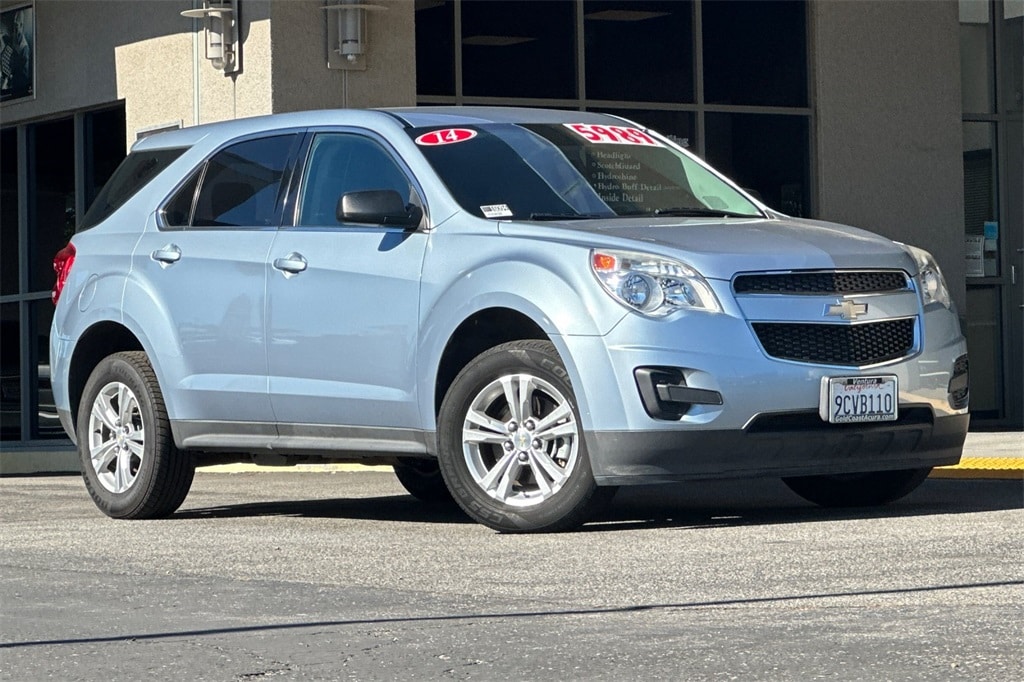 This 2014 Silver Topaz Metallic Chevrolet Equinox LS FWD is well equipped and includes these features and benefits: Equipment Group 1LS (6 Speaker Audio System Feature and Manual Climate Control), 17" Aluminum Wheels, 3.23 Axle Ratio, 4-Wheel Disc Brakes, 6 Speakers, ABS brakes, Air Conditioning, Alloy wheels, AM/FM radio: SiriusXM, Brake assist, Bumpers: body-color, CD player, Cloth Seat Trim, Compass, Delay-off headlights, Deluxe Front Bucket Seats, Driver door bin, Driver vanity mirror, Dual front impact airbags, Dual front side impact airbags, Electronic Stability Control, Emergency communication system: OnStar Directions & Connections, Four wheel independent suspension, Front anti-roll bar, Front Bucket Seats, Front Center Armrest, Front License Plate Bracket, Front reading lights, Fully automatic headlights, Illuminated entry, Low tire pressure warning, Occupant sensing airbag, Outside temperature display, Overhead airbag, Panic alarm, Passenger door bin, Passenger vanity mirror, Power door mirrors, Power driver seat, Power steering, Power windows, Radio data system, Radio: AM/FM Stereo w/CD Player & MP3 Capability, Rear anti-roll bar, Rear seat center armrest, Rear window defroster, Rear window wiper, Remote keyless entry, Security system, SiriusXM Satellite Radio, Speed control, Speed-sensing steering, Split folding rear seat, Spoiler, Steering wheel mounted audio controls, Tachometer, Telescoping steering wheel, Tilt steering wheel, Traction control, Trip computer, and Variably intermittent wipers.