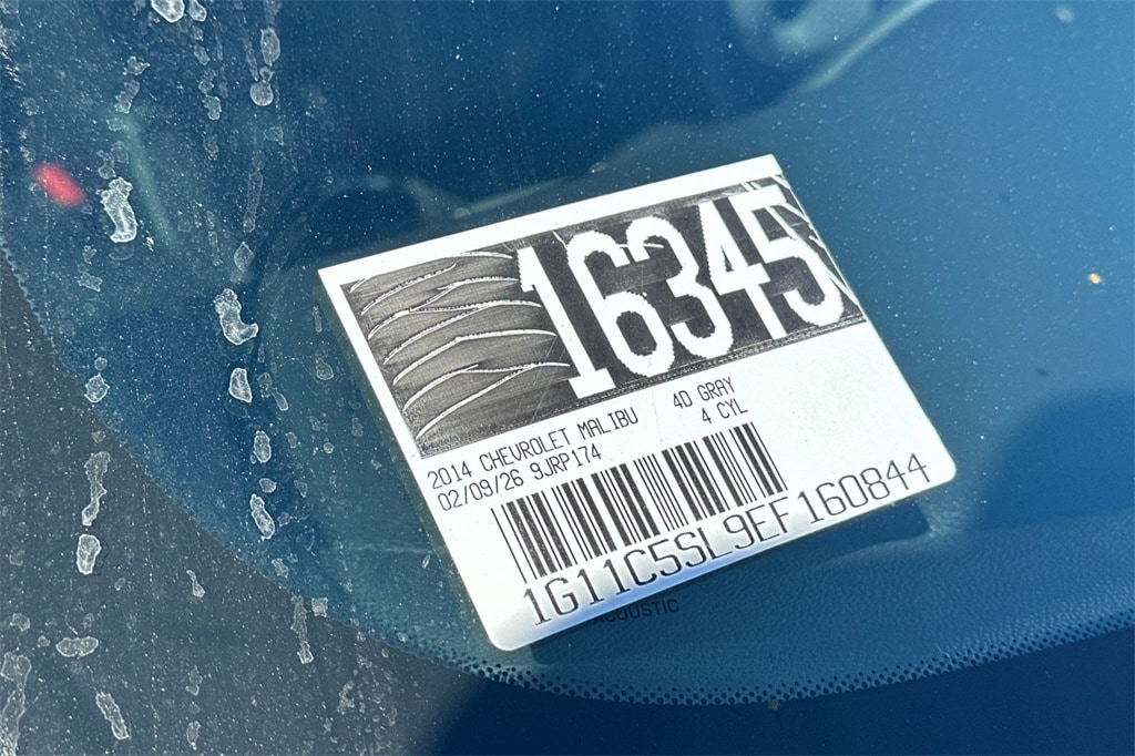 Recent Arrival! This 2014 Ashen Gray Metallic Chevrolet Malibu LT FWD is well equipped and includes these features and benefits: Power Convenience Package (17" 5-Spoke Aluminum Wheels, Body-Color Bodyside Moldings, Driver 8-Way Power Seat Adjuster, Driver Power Lumbar Seat Adjuster, Inside Rear-View Auto-Dimming Mirror, Rear Vision Camera, Remote Vehicle Starter System, Trunk Cargo Convenience Net, and Universal Home Remote), Preferred Equipment Group 1LT, Black Cloth, 16" Aluminum Wheels, 4-Way Manual Front Passenger Seat Adjuster, 4-Wheel Disc Brakes, 6 Speakers, ABS brakes, Air Conditioning, All-Weather Floor Mats (LPO) (DISC), Alloy wheels, AM/FM radio: SiriusXM, AM/FM Stereo w/CD Player & MP3 Playback, Audio System Feature, Black All-Weather Cargo Mat (LPO) (DISC), Brake assist, Bumpers: body-color, CD player, Chevrolet MyLink, Compass, Delay-off headlights, Driver door bin, Driver vanity mirror, Dual front impact airbags, Dual front side impact airbags, Electronic Stability Control, Emergency communication system: OnStar Directions & Connections, Four wheel independent suspension, Front anti-roll bar, Front Bucket Seats, Front Center Armrest w/Storage, Front License Plate Bracket, Front reading lights, Fully automatic headlights, Heated door mirrors, Illuminated entry, Knee airbag, Low tire pressure warning, Occupant sensing airbag, Outside temperature display, Overhead airbag, Overhead console, Panic alarm, Passenger door bin, Passenger vanity mirror, Power door mirrors, Power driver seat, Power steering, Power Sunroof, Power windows, Premium Cloth/Leatherette Seat Trim, Radio data system, Rear anti-roll bar, Rear seat center armrest, Rear side impact airbag, Rear window defroster, Remote keyless entry, Security system, SIRIUSXM Satellite Radio, Speed control, Split folding rear seat, Steering wheel mounted audio controls, Tachometer, Telescoping steering wheel, Tilt steering wheel, Traction control, Trip computer, Turn signal indicator mirrors, and Variably intermittent wipers. Black Cloth.