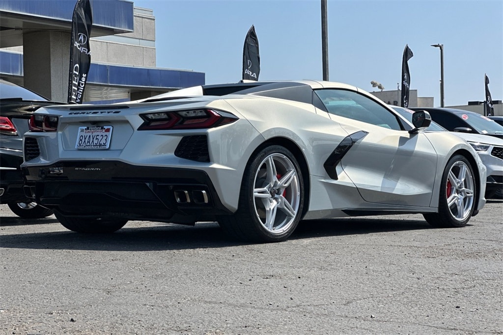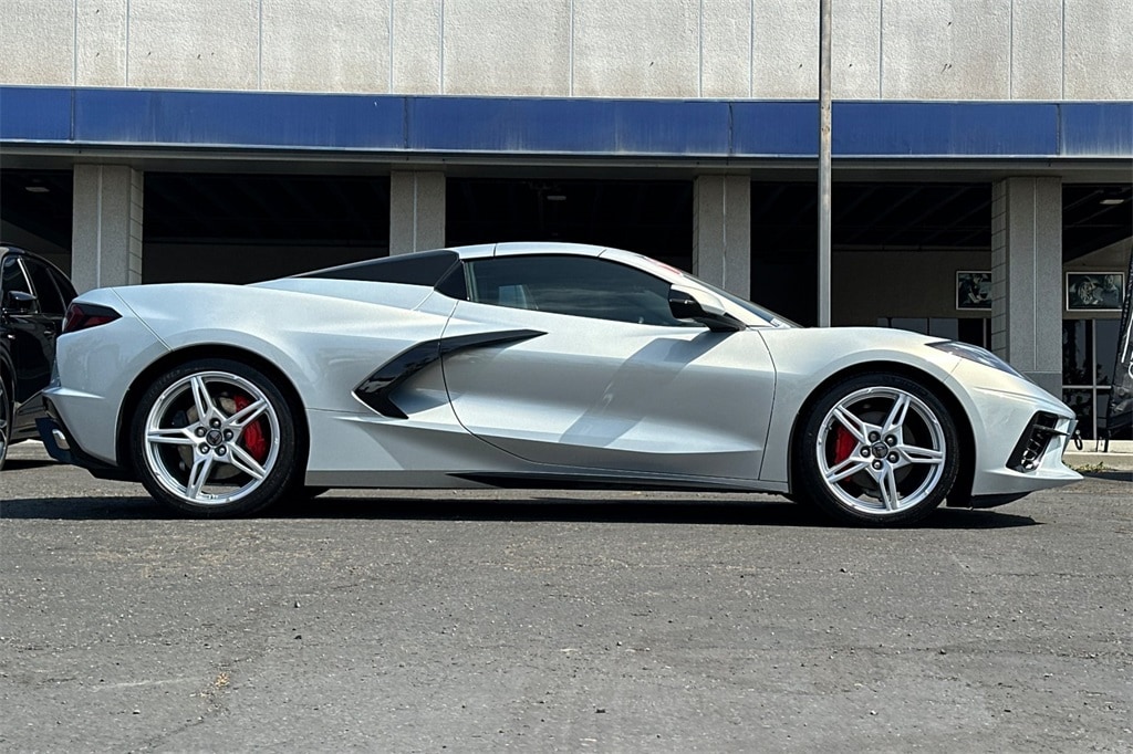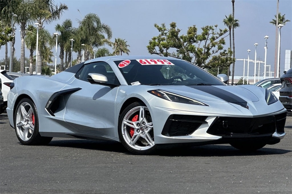 This 2021 Silver Flare Metallic Chevrolet Corvette Stingray RWD is well equipped and includes these features and benefits: Memory Driver & Passenger Convenience Package, Preferred Equipment Group 2LT (2 Cargo Nets, Driver Power Bolster Seat Adjuster, Electrical Theft Deterrent System, HD Front & Rear Vision Cameras, Head-Up Display, Heated & Vented Driver & Passenger Seats, Heated Steering Wheel, Passenger Power Bolster Seat Adjuster, Performance Data & Video Recorder, Power Driver Lumbar Control Seat Adjuster, Power Passenger Lumbar Control Seat Adjuster, Power-Adjustable Outside Heated Mirrors, Rear Cross Traffic Alert, Side Blind Zone Alert, Universal Home Remote, Vehicle Inclination Theft Deterrent Sensor, Vehicle Interior Movement Theft Deterrent Sensor, and Wireless Charging for Devices), 14 Speakers, 4-Wheel Disc Brakes, 8-Way Power Driver Seat Adjuster, 8-Way Power Passenger Seat Adjuster, ABS brakes, Air Conditioning, Alloy wheels, AM/FM radio: SiriusXM, Auto-dimming door mirrors, Auto-dimming Rear-View mirror, Automatic temperature control, Bose Performance Series Sound System w/14 Speakers, Brake assist, Bright Red-Painted Calipers, Bumpers: body-color, Compass, Convertible HardTop, Convertible roof lining, Delay-off headlights, Driver door bin, Driver vanity mirror, Dual front impact airbags, Dual front side impact airbags, Electronic Stability Control, Emergency communication system: OnStar and Chevrolet connected services capable, Four wheel independent suspension, Front anti-roll bar, Front Bucket Seats, Front Center Armrest, Front dual zone A/C, Front License Plate Bracket, Front Lift Adjustable Height w/Memory, Front reading lights, Fully automatic headlights, Garage door transmitter, Glass rear window, GT1 Bucket Seats, HD Radio, Heads-Up Display, Heated door mirrors, Heated front seats, Heated steering wheel, Illuminated entry, Integrated roll-over protection, Leather Shift Knob, Leather steering wheel, Low tire pressure warning, Memory seat, Mulan Lthr Seating Surfaces w/Perforated Inserts, Navigation System, Occupant sensing airbag, Outside temperature display, Overhead console, Panic alarm, Passenger door bin, Passenger vanity mirror, Performance Exhaust w/Stainless-Steel Tips, Power convertible roof, Power door mirrors, Power driver seat, Power passenger seat, Power steering, Power windows, Premium Carpeted Floor Mats, Radio data system, Radio: Chevrolet Infotainment 3 Premium System, Rear anti-roll bar, Rear Parking Sensors, Rear window defroster, Remote keyless entry, Security system, SiriusXM Radio, Speed control, Speed-sensing steering, Sport steering wheel, Steering wheel memory, Steering wheel mounted audio controls, Tachometer, Telescoping steering wheel, Tilt steering wheel, Traction control, Trip computer, Turn signal indicator mirrors, Variably intermittent wipers, Ventilated front seats, Voltmeter, Wheel Locks, Wheels: 19" x 8.5" Fr/20" x 11" Rr Bright Silver, and Wireless Apple CarPlay/Wireless Android Auto.