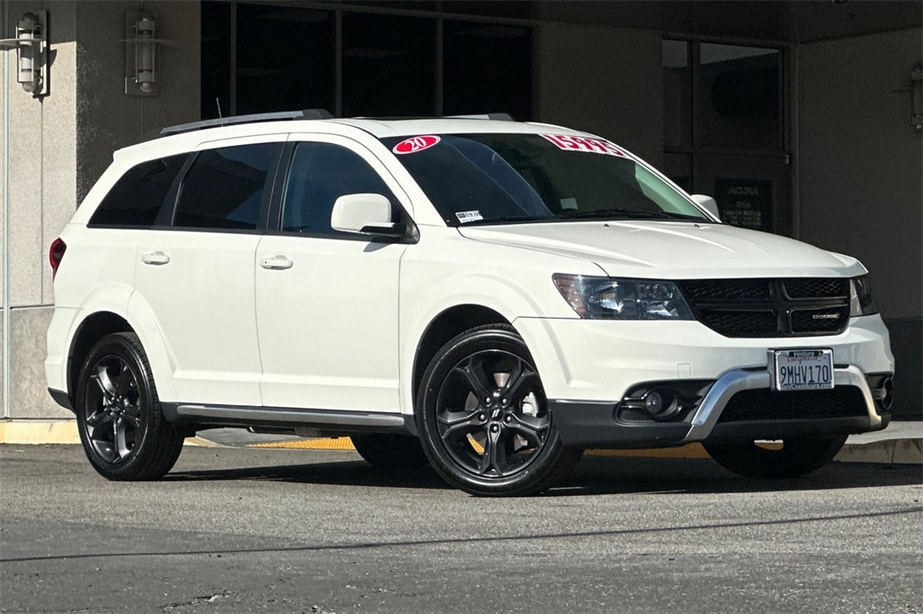 Recent Arrival! This 2020 Vice White Dodge Journey Crossroad FWD is well equipped and includes these features and benefits: Quick Order Package 22S, 3rd row seats: bench, 4-Wheel Disc Brakes, 4.28 Axle Ratio, 6 Speakers, ABS brakes, Air Conditioning, Alloy wheels, AM/FM radio: SiriusXM, Anti-whiplash front head restraints, Auto-dimming Rear-View mirror, Automatic temperature control, Brake assist, Bumpers: body-color, CD player, Compass, Delay-off headlights, Driver door bin, Driver vanity mirror, Dual front impact airbags, Dual front side impact airbags, DVD-Audio, Electronic Stability Control, Four wheel independent suspension, Front anti-roll bar, Front Bucket Seats, Front Center Armrest, Front dual zone A/C, Front fog lights, Front License Plate Attachment Screws, Front reading lights, Fully automatic headlights, Heated door mirrors, Illuminated entry, Knee airbag, Leather Seats w/Sport Mesh Inserts, Low tire pressure warning, Manufacturer's Statement of Origin, Occupant sensing airbag, Outside temperature display, Overhead airbag, Overhead console, Panic alarm, ParkView Rear Back-Up Camera, Passenger door bin, Passenger vanity mirror, Power door mirrors, Power driver seat, Power moonroof, Power steering, Power windows, Radio: Uconnect 3 w/8.4" Display, Rear air conditioning, Rear anti-roll bar, Rear reading lights, Rear seat center armrest, Rear window defroster, Rear window wiper, Reclining 3rd row seat, Remote keyless entry, Roof rack: rails only, Speed control, Speed-sensing steering, Speed-Sensitive Wipers, Split folding rear seat, Steering wheel mounted audio controls, Tachometer, Telescoping steering wheel, Tilt steering wheel, Touring Suspension, Traction control, Trip computer, Variably intermittent wipers, and Wheels: 19" x 7.0" Black Noise Aluminum.