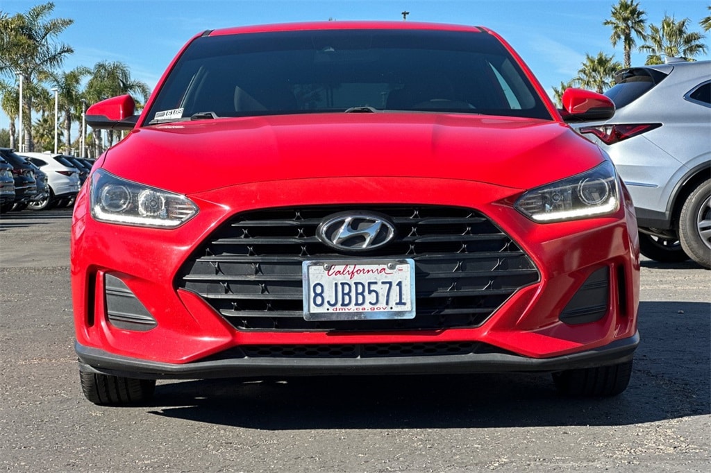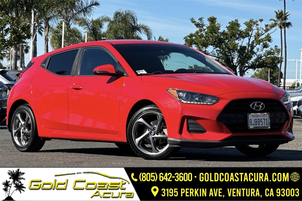 This 2019 Racing Red Hyundai Veloster 2.0 FWD is well equipped and includes these features and benefits: Option Group 01, 17" x 7.0J Alloy Wheels, 4-Wheel Disc Brakes, 6 Speakers, ABS brakes, Air Conditioning, Alloy wheels, AM/FM radio, Apple CarPlay & Android Auto, Brake assist, Bumpers: body-color, Delay-off headlights, Driver door bin, Driver vanity mirror, Dual front impact airbags, Dual front side impact airbags, Electronic Stability Control, Exterior Parking Camera Rear, Four wheel independent suspension, Front anti-roll bar, Front Bucket Seats, Front Center Armrest, Front reading lights, Fully automatic headlights, Heated door mirrors, Illuminated entry, Low tire pressure warning, Occupant sensing airbag, Outside temperature display, Overhead airbag, Overhead console, Panic alarm, Passenger door bin, Passenger vanity mirror, Power door mirrors, Power steering, Power windows, Premium Cloth Seat Trim, Radio: AM/FM 7" Display Audio, Rear anti-roll bar, Rear window defroster, Rear window wiper, Remote keyless entry, Security system, Speed control, Speed-sensing steering, Split folding rear seat, Spoiler, Steering wheel mounted audio controls, Tachometer, Telescoping steering wheel, Tilt steering wheel, Traction control, Trip computer, and Variably intermittent wipers.