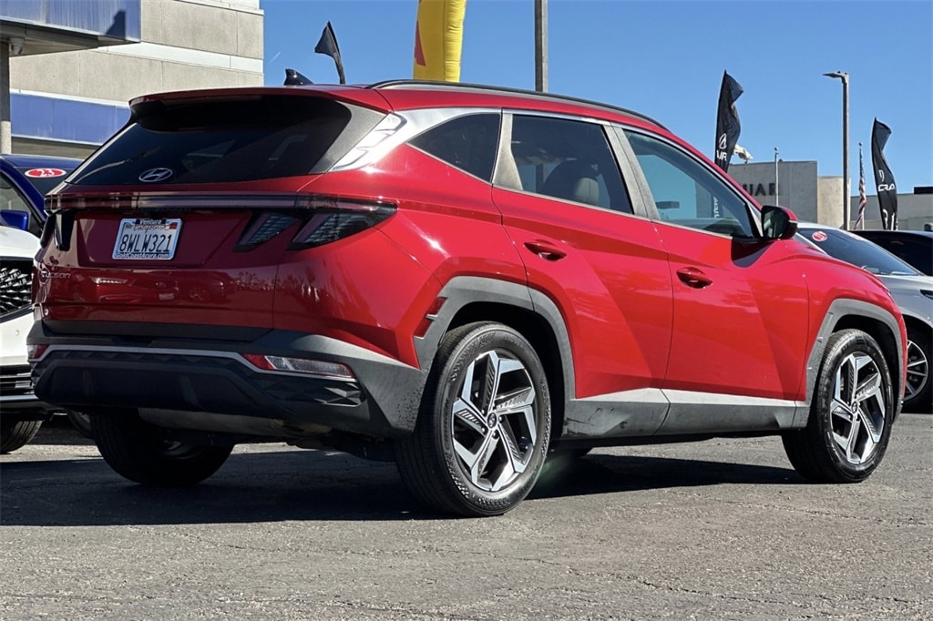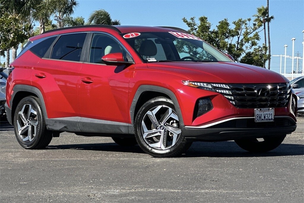 This 2022 Calypso Red Hyundai Tucson SEL FWD is well equipped and includes these features and benefits: Convenience + Premium Package (10.25" Digital Instrument Cluster, Auto-Dimming Interior Mirror w/Homelink, Dark Chrome Grille & H-Logo, Digital Key, Dual Automatic Temperature Control, Hands-Free Power Liftgate w/Auto-Open, Leather Seat Trim, Leather-Wrapped Shift Knob, Leather-Wrapped Steering Wheel, LED Interior Lights (Room, Map), Power Sunroof, Premium 5-LED DRLs, Radio: Bose Premium Audio System w/AM/FM/HD, Ultrasonic Rear Occupant Alert, Ventilated Front Seats, Wheels: 19" x 7.5J" Machine-Face Finish Alloy, and Wireless Phone Charging), 3.648 Axle Ratio, 4-Wheel Disc Brakes, 6 Speakers, ABS brakes, Air Conditioning, Alloy wheels, AM/FM radio: SiriusXM, Apple CarPlay & Android Auto, Auto High-beam Headlights, Brake assist, Bumpers: body-color, Cargo Tray, Carpeted Floor Mats, Delay-off headlights, Driver door bin, Driver vanity mirror, Dual front impact airbags, Dual front side impact airbags, Electronic Stability Control, Emergency communication system: Blue Link Connected Car Service (3-year complimentary subscription), First Aid Kit, Four wheel independent suspension, Front anti-roll bar, Front Bucket Seats, Front Center Armrest, Front reading lights, Fully automatic headlights, Heated door mirrors, Heated Front Bucket Seats, Heated front seats, Illuminated entry, Low tire pressure warning, Occupant sensing airbag, Outside temperature display, Overhead airbag, Overhead console, Panic alarm, Passenger door bin, Passenger vanity mirror, Power door mirrors, Power driver seat, Power steering, Power windows, Radio data system, Radio: AM/FM/HD/SiriusXM Audio System, Rear anti-roll bar, Rear seat center armrest, Rear window defroster, Rear window wiper, Remote keyless entry, Roof rack: rails only, Security system, Speed control, Split folding rear seat, Spoiler, Stain & Odor Resistant Cloth Seat Trim, Steering wheel mounted audio controls, Tachometer, Telescoping steering wheel, Tilt steering wheel, Traction control, Trip computer, Turn signal indicator mirrors, Variably intermittent wipers, and Wheels: 17" x 7.0J" Alloy.