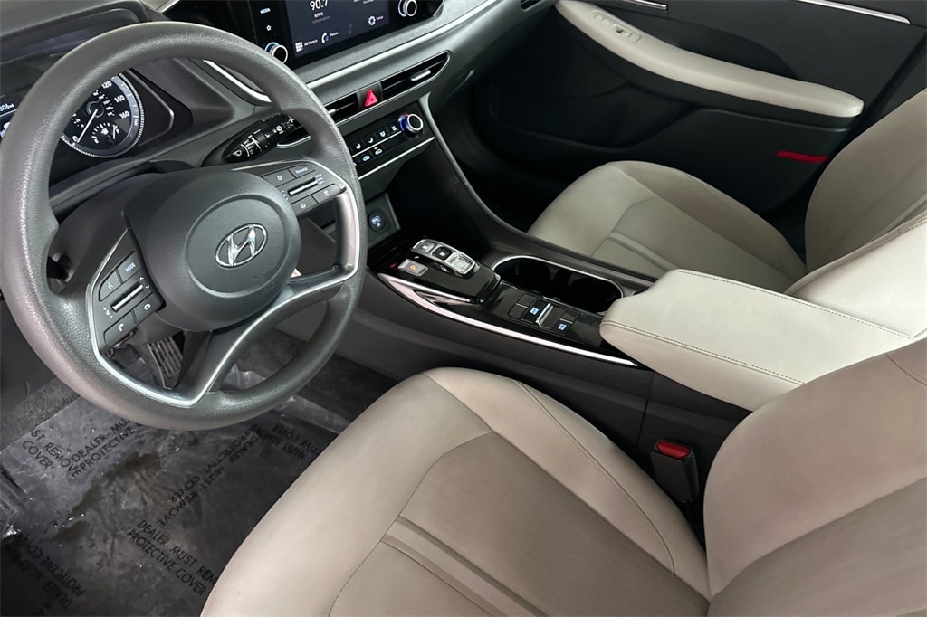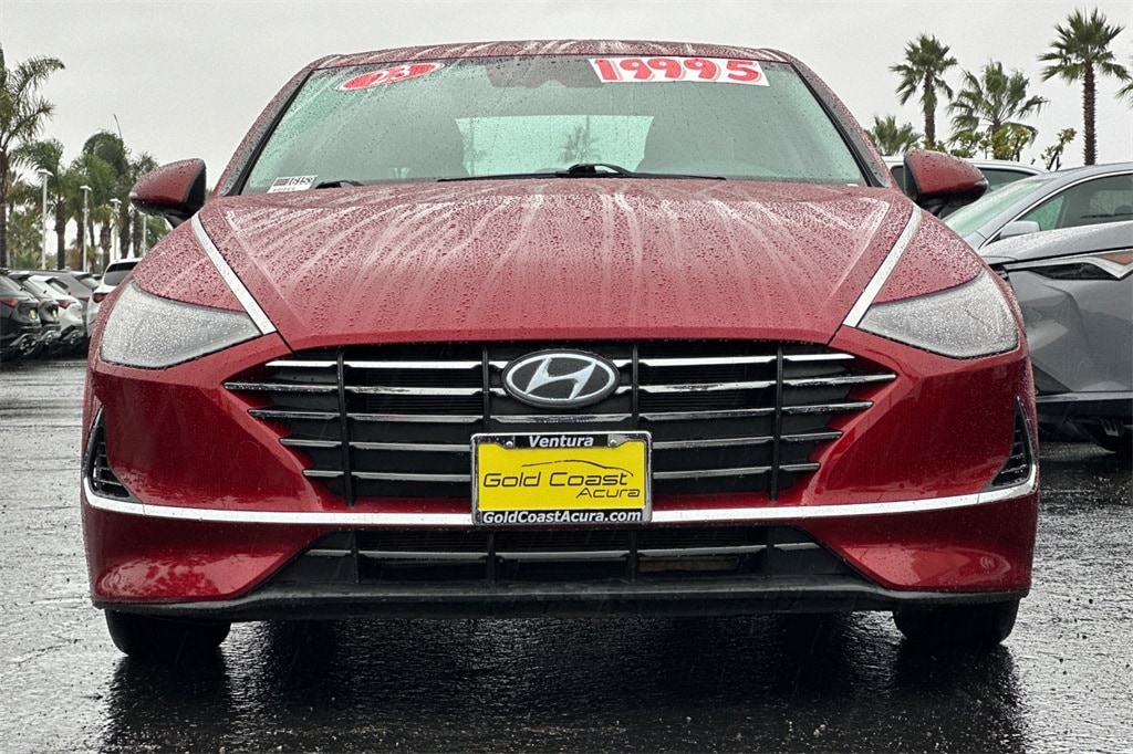 This 2023 Ultimate Red Hyundai Sonata SE FWD is well equipped and includes these features and benefits: Option Group 01, Dark Gray Cloth, 16" x 6.5J Aluminum Alloy Wheels, 4-Wheel Disc Brakes, 6 Speakers, ABS brakes, Air Conditioning, Alloy wheels, AM/FM radio, Apple CarPlay & Android Auto, Auto High-beam Headlights, Brake assist, Bumpers: body-color, Delay-off headlights, Driver door bin, Driver vanity mirror, Dual front impact airbags, Dual front side impact airbags, Electronic Stability Control, Exterior Parking Camera Rear, Four wheel independent suspension, Front anti-roll bar, Front Bucket Seats, Front Center Armrest, Front reading lights, Fully automatic headlights, Heated door mirrors, Illuminated entry, Knee airbag, Low tire pressure warning, Occupant sensing airbag, Outside temperature display, Overhead airbag, Overhead console, Panic alarm, Passenger door bin, Passenger vanity mirror, Power door mirrors, Power steering, Power windows, Premium Cloth Seating Surfaces, Radio data system, Radio: AM/FM/MP3/HD Display Audio, Rear anti-roll bar, Rear side impact airbag, Rear window defroster, Remote keyless entry, Security system, Speed control, Speed-sensing steering, Speed-Sensitive Wipers, Split folding rear seat, Steering wheel mounted audio controls, Tachometer, Telescoping steering wheel, Tilt steering wheel, Traction control, Trip computer, Turn signal indicator mirrors, and Variably intermittent wipers. Dark Gray Cloth.