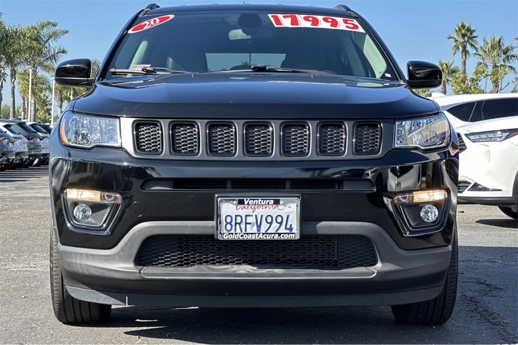 This 2020 Diamond Black Crystal Pearlcoat Jeep Compass Altitude FWD is well equipped and includes these features and benefits: MOPAR Interior Protection Package (MOPAR All-Weather Floor Mats and MOPAR Molded Cargo Tray), Quick Order Package 28B Altitude (Black Day Light Opening Moldings, Black Grille w/Black Rings, Black Roof, Bright Exhaust Tip, Gloss Black Compass Badge, Gloss Black Fog Lamp Bezels, Gloss Black Jeep Badge, Gloss Black Lower Rear Fascia Valance, Piano Black Interior Accents, and Wheels: 18" x 7.0" Black Aluminum), 3.502 Axle Ratio, 4-Wheel Disc Brakes, 6 Speakers, ABS brakes, Air Conditioning, Alloy wheels, AM/FM radio: SiriusXM, Anti-whiplash front head restraints, Apple CarPlay, Apple CarPlay/Android Auto, Automatic temperature control, Bluetooth® Streaming Audio, Brake assist, Bumpers: body-color, Compass, Delay-off headlights, Driver door bin, Driver vanity mirror, Dual front impact airbags, Dual front side impact airbags, Electronic Stability Control, Four wheel independent suspension, Front anti-roll bar, Front Bucket Seats, Front Center Armrest w/Storage, Front dual zone A/C, Front fog lights, Front License Plate Bracket (DISC), Front reading lights, Fully automatic headlights, Google Android Auto, GPS Antenna Input, Heated door mirrors, Illuminated entry, Knee airbag, Leather Shift Knob, Low tire pressure warning, Media Hub (USB, AUX), Occupant sensing airbag, Outside temperature display, Overhead airbag, Overhead console, Panic alarm, ParkView Rear Back-Up Camera, Passenger door bin, Passenger vanity mirror, Power door mirrors, Power steering, Power windows, Premium Cloth/Vinyl Bucket Seats, Radio: Uconnect 4 w/7" Display, Rear anti-roll bar, Rear seat center armrest, Rear window defroster, Rear window wiper, Remote keyless entry, Roof rack: rails only, Speed control, Split folding rear seat, Spoiler, Steering wheel mounted audio controls, Tachometer, Telescoping steering wheel, Tilt steering wheel, Traction control, Trip computer, USB Host Flip, Variably intermittent wipers, and Wheels: 17" x 7.0" Silver Painted Aluminum.