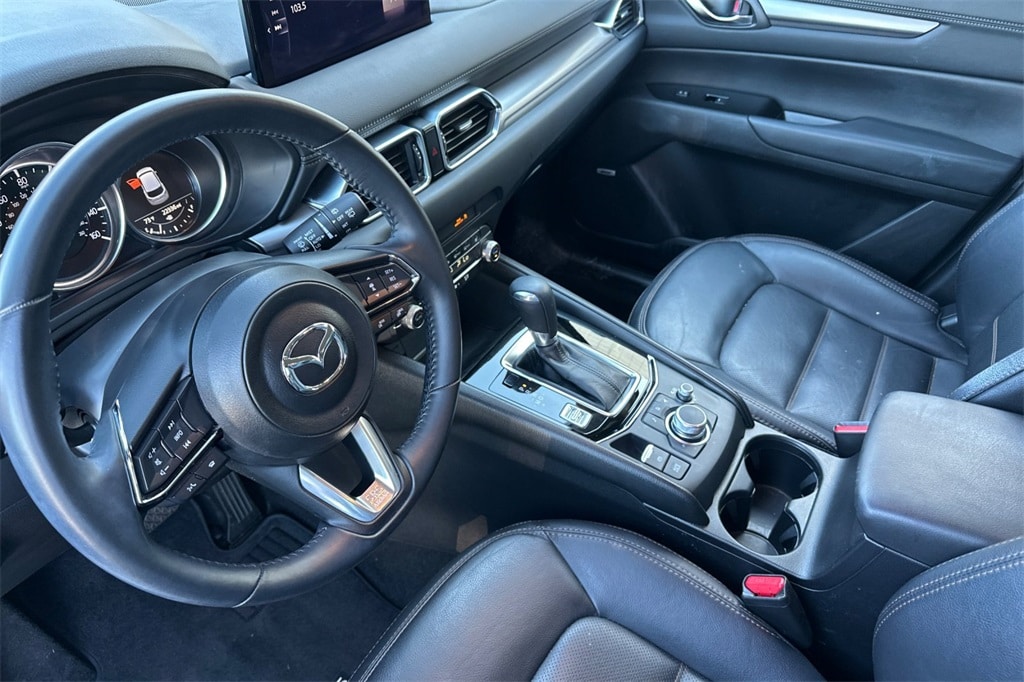 Recent Arrival! This 2021 Snowflake White Pearl Mica Mazda CX-5 Touring FWD is well equipped and includes these features and benefits: Touring Preferred SV Package (Auto Dimming Rearview Mirror w/HomeLink, Bose 10-Speaker Premium Audio Sound System, Heated Front Bucket Seats w/Memory, Leather Seat Trim, Power Rear Liftgate, and Power Sliding-Glass Moonroof w/Interior Sunshade), 4-Wheel Disc Brakes, 4.325 Axle Ratio, 6 Speakers, ABS brakes, Air Conditioning, Alloy wheels, AM/FM radio, AppLink/Apple CarPlay and Android Auto, Auto High-beam Headlights, Automatic temperature control, Brake assist, Bumpers: body-color, Delay-off headlights, Driver door bin, Driver vanity mirror, Dual front impact airbags, Dual front side impact airbags, Electronic Stability Control, Emergency communication system: MAZDA CONNECT, Exterior Parking Camera Rear, Four wheel independent suspension, Front anti-roll bar, Front Bucket Seats, Front Center Armrest, Front dual zone A/C, Front reading lights, Fully automatic headlights, Heated Front Bucket Seats, Heated front seats, Illuminated entry, Leather Shift Knob, Leatherette Seat Trim, Low tire pressure warning, Occupant sensing airbag, Outside temperature display, Overhead airbag, Overhead console, Panic alarm, Passenger door bin, Passenger vanity mirror, Power door mirrors, Power driver seat, Power steering, Power windows, Radio data system, Radio: AM/FM/HD Audio System, Rain sensing wipers, Rear anti-roll bar, Rear reading lights, Rear seat center armrest, Rear window defroster, Rear window wiper, Remote keyless entry, Snowflake White Pearl Mica Paint, Speed control, Speed-sensing steering, Split folding rear seat, Spoiler, Steering wheel mounted audio controls, Tachometer, Telescoping steering wheel, Tilt steering wheel, Traction control, Trip computer, Turn signal indicator mirrors, Variably intermittent wipers, and Wheels: 17" x 7J Aluminum Alloy.