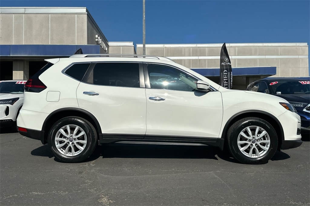 Recent Arrival! This 2019 Glacier White Nissan Rogue S FWD is well equipped and includes these features and benefits: Special Edition Package (17" Aluminum Alloy Wheels, Chrome Interior Door Handles, Chrome Outside Door Handles, Heated Driver & Front Passenger Seats, Heated Outside Mirrors, Leather-Wrapped Shift Knob, Leather-Wrapped Steering Wheel, Privacy Glass, Roof Rails, and Special Edition Badge), 4 Speakers, 4-Wheel Disc Brakes, 6.386 Axle Ratio, ABS brakes, Air Conditioning, AM/FM radio: SiriusXM, Anti-whiplash front head restraints, Auto High-beam Headlights, Black Splash Guards (Set of 4), Blind Spot Warning, Brake assist, Bumpers: body-color, CD player, Chrome Rear Bumper Protector, Cloth Seat Trim, Delay-off headlights, Driver door bin, Driver vanity mirror, Dual front impact airbags, Dual front side impact airbags, Electronic Stability Control, First Aid Kit, Floor Mats & 2-PC Cargo Area Protector, Four wheel independent suspension, Front anti-roll bar, Front Bucket Seats, Front Center Armrest w/Storage, Front reading lights, Fully automatic headlights, Illuminated entry, Low tire pressure warning, NissanConnect featuring Apple CarPlay and Android Auto, Occupant sensing airbag, Outside temperature display, Overhead airbag, Overhead console, Panic alarm, Passenger door bin, Passenger vanity mirror, Power door mirrors, Power steering, Power windows, Radio data system, Radio: AM/FM/CD/AUX, Rear anti-roll bar, Rear seat center armrest, Rear window defroster, Rear window wiper, Remote keyless entry, Retractable Cargo Cover, Security system, Speed control, Speed-sensing steering, Split folding rear seat, Spoiler, Steering wheel mounted audio controls, Tachometer, Telescoping steering wheel, Tilt steering wheel, Traction control, Trip computer, Variably intermittent wipers, and Wheels: 17" Steel w/Full Covers.
