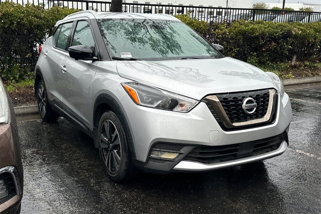 Recent Arrival! This 2020 Brilliant Silver Metallic Nissan Kicks SR FWD is well equipped and includes these features and benefits: SR Premium Package (Bose Personal Plus Audio System, Heated Front Seats, Prima-Tex Appointed Seat Trim, and Security System), 17" Alloy Wheels, 3.927 Axle Ratio, 6 Speakers, ABS brakes, Air Conditioning, Alloy wheels, AM/FM radio: SiriusXM, Auto High-beam Headlights, Automatic temperature control, Blind Spot Warning, Brake assist, Bumpers: body-color, Carpeted Floor Mats w/Cargo Mat, Center Armrest w/Storage, Cloth Seat Trim, Compass, Delay-off headlights, Driver door bin, Driver vanity mirror, Driver's Seat Mounted Armrest, Dual front impact airbags, Dual front side impact airbags, Electronic Stability Control, Exterior Parking Camera Rear, Front anti-roll bar, Front Bucket Seats, Front fog lights, Front reading lights, Front wheel independent suspension, Fully automatic headlights, Heated door mirrors, Illuminated entry, Knee airbag, Leather Shift Knob, Low tire pressure warning, NissanConnect featuring Apple CarPlay and Android Auto, Occupant sensing airbag, Outside temperature display, Overhead airbag, Panic alarm, Passenger door bin, Passenger vanity mirror, Power door mirrors, Power steering, Power windows, Radio data system, Radio: AM/FM Audio System, Rear Parking Sensors, Rear reading lights, Rear Roof Spoiler, Rear side impact airbag, Rear window defroster, Rear window wiper, Remote keyless entry, Roof rack: rails only, Speed control, Splash Guards Grain (4 Piece), Split folding rear seat, Spoiler, Sport steering wheel, Steering wheel mounted audio controls, Tachometer, Telescoping steering wheel, Tilt steering wheel, Traction control, Trip computer, Turn signal indicator mirrors, and Variably intermittent wipers.