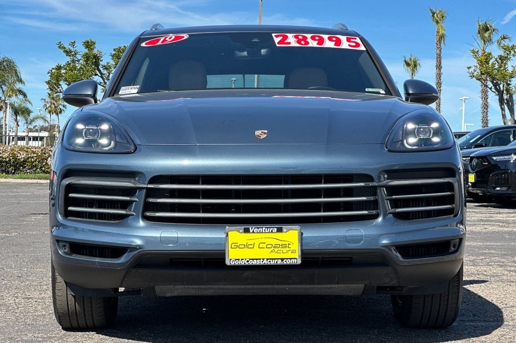 This 2019 Blue Porsche Cayenne AWD is well equipped and includes these features and benefits: Tan Leather, 10 Speakers, 4-Wheel Disc Brakes, 8-Way Power Seats, ABS brakes, Adaptive suspension, Air Conditioning, Alloy wheels, AM/FM radio: SiriusXM, Apple CarPlay, Automatic temperature control, Axle Ratio: TBD, Brake assist, Bumpers: body-color, Delay-off headlights, Driver door bin, Driver vanity mirror, Dual front impact airbags, Dual front side impact airbags, Electronic Stability Control, Exterior Parking Camera Rear, Four wheel independent suspension, Front anti-roll bar, Front Bucket Seats, Front Center Armrest, Front dual zone A/C, Front reading lights, Fully automatic headlights, Garage door transmitter: HomeLink, Heated door mirrors, Illuminated entry, Knee airbag, Leather Shift Knob, Low tire pressure warning, Navigation system: Porsche Communication Management (PCM), Occupant sensing airbag, Outside temperature display, Overhead airbag, Overhead console, Panic alarm, Partial Leather Seat Trim, Passenger door bin, Passenger vanity mirror, Porsche Communication Management, Power door mirrors, Power driver seat, Power Liftgate, Power passenger seat, Power steering, Power windows, Radio data system, Rain sensing wipers, Rear anti-roll bar, Rear fog lights, Rear reading lights, Rear seat center armrest, Rear side impact airbag, Rear window defroster, Rear window wiper, Remote keyless entry, Security system, Speed control, Split folding rear seat, Spoiler, Steering wheel mounted audio controls, Tachometer, Telescoping steering wheel, Tilt steering wheel, Traction control, Trip computer, Turn signal indicator mirrors, Variably intermittent wipers, Voltmeter, and Wheels: 19" Cayenne. Tan Leather.