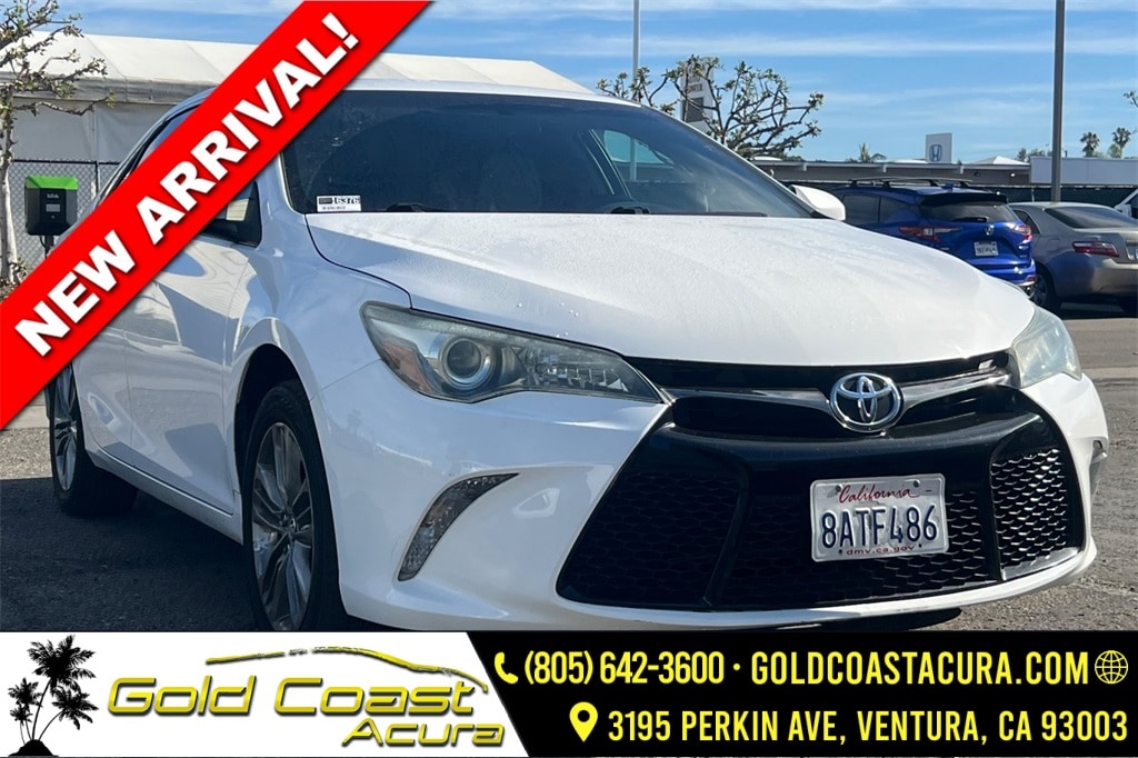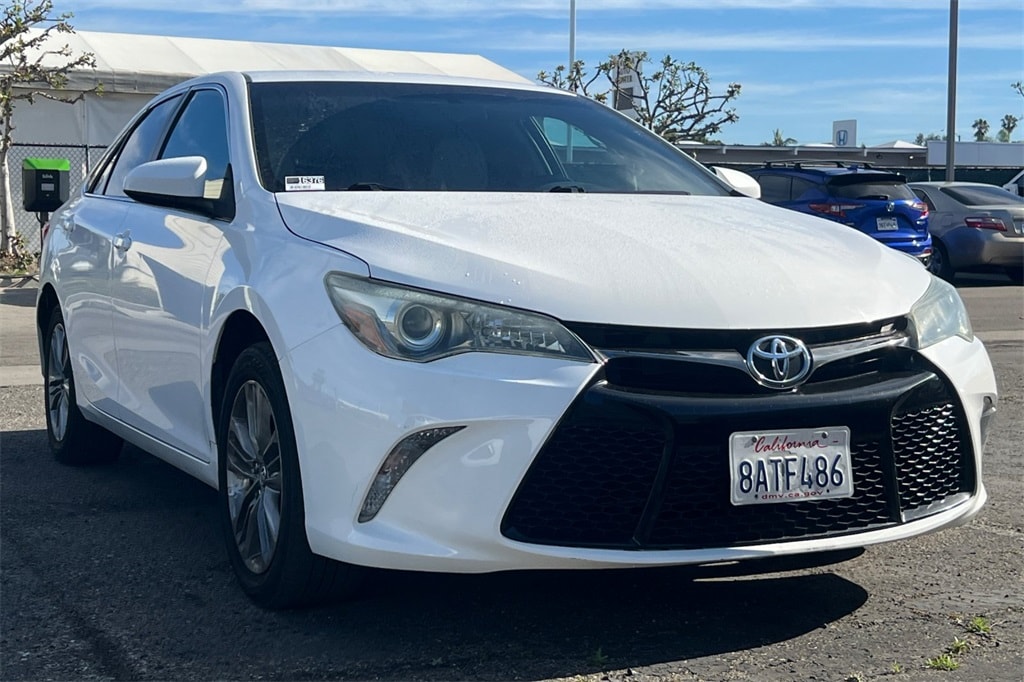 Recent Arrival! This 2016 White Toyota Camry SE FWD is well equipped and includes these features and benefits: Gray Cloth, 4-Wheel Disc Brakes, 6 Speakers, 7.0J x 17" Alloy Wheels, ABS brakes, Air Conditioning, Alloy wheels, AM/FM radio, Brake assist, Bumpers: body-color, CD player, Delay-off headlights, Driver door bin, Driver vanity mirror, Dual front impact airbags, Dual front side impact airbags, Electronic Stability Control, Exterior Parking Camera Rear, Fabric Seat Trim, Four wheel independent suspension, Front anti-roll bar, Front Bucket Seats, Front Center Armrest, Front reading lights, Fully automatic headlights, Heated door mirrors, Illuminated entry, Knee airbag, Leather steering wheel, Low tire pressure warning, Occupant sensing airbag, Outside temperature display, Overhead airbag, Overhead console, Panic alarm, Passenger door bin, Passenger vanity mirror, Power door mirrors, Power driver seat, Power steering, Power windows, Radio: Entune Audio, Radio: Entune Audio Plus, Rear anti-roll bar, Rear seat center armrest, Rear side impact airbag, Rear window defroster, Remote keyless entry, Speed control, Speed-sensing steering, Split folding rear seat, Spoiler, Sport steering wheel, Steering wheel mounted audio controls, Tachometer, Telescoping steering wheel, Tilt steering wheel, Traction control, Trip computer, and Variably intermittent wipers. Gray Cloth.