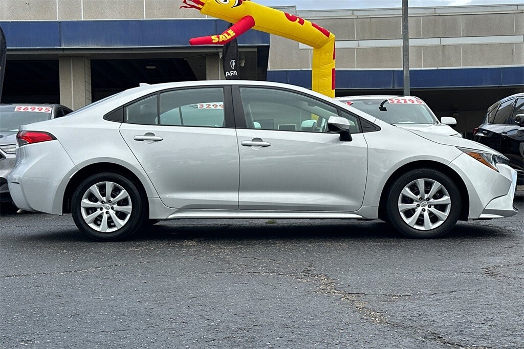This 2023 Silver Toyota Corolla LE FWD is well equipped and includes these features and benefits: 4-Wheel Disc Brakes, 6 Speakers, ABS brakes, Air Conditioning, AM/FM radio: SiriusXM, Auto High-beam Headlights, Automatic temperature control, Brake assist, Bumpers: body-color, Delay-off headlights, Driver door bin, Driver vanity mirror, Dual front impact airbags, Dual front side impact airbags, Electronic Stability Control, Emergency communication system: Safety Connect (up to 10-year trial subscription), Exterior Parking Camera Rear, Front anti-roll bar, Front Bucket Seats, Front Center Armrest, Front reading lights, Front wheel independent suspension, Fully automatic headlights, Illuminated entry, Knee airbag, Low tire pressure warning, Occupant sensing airbag, Outside temperature display, Overhead airbag, Panic alarm, Passenger door bin, Passenger vanity mirror, Power door mirrors, Power steering, Power windows, Premium Fabric Seat Trim, Radio data system, Radio: 8" Toyota Audio Multimedia, Rear anti-roll bar, Rear seat center armrest, Rear side impact airbag, Rear window defroster, Remote keyless entry, Speed control, Split folding rear seat, Steering wheel mounted audio controls, Tachometer, Telescoping steering wheel, Tilt steering wheel, Traction control, Trip computer, Variably intermittent wipers, and Wheels: 16" Wide Vent Steel.
