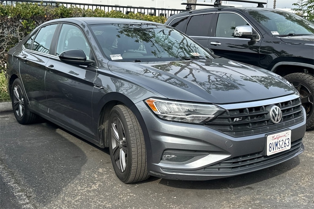 This 2021 Gray Volkswagen Jetta R-Line FWD is well equipped and includes these features and benefits: Black Artificial Leather, 17" Twin 5-Spoke Alloy Wheels, 4 Speakers, 4-Wheel Disc Brakes, ABS brakes, Air Conditioning, Alloy wheels, AM/FM radio, Automatic temperature control, Brake assist, Bumpers: body-color, Delay-off headlights, Driver door bin, Driver vanity mirror, Dual front impact airbags, Dual front side impact airbags, Electronic Stability Control, Emergency communication system: VW Car-Net services (capabilities require enrollment or subscription), Exterior Parking Camera Rear, Front anti-roll bar, Front Bucket Seats, Front Center Armrest, Front dual zone A/C, Front fog lights, Front reading lights, Front wheel independent suspension, Fully automatic headlights, Heated door mirrors, Heated Front Comfort Seats, Heated front seats, Illuminated entry, Leather Shift Knob, Low tire pressure warning, Occupant sensing airbag, Outside temperature display, Overhead airbag, Overhead console, Panic alarm, Passenger door bin, Passenger vanity mirror, Perforated V-Tex Leatherette Seat Trim, Power door mirrors, Power moonroof: Panoramic, Power steering, Power windows, Radio data system, Radio: Composition Color w/6.5" Touchscreen, Rear anti-roll bar, Rear reading lights, Rear seat center armrest, Rear window defroster, Remote keyless entry, Speed control, Speed-sensing steering, Split folding rear seat, Steering wheel mounted audio controls, Tachometer, Telescoping steering wheel, Tilt steering wheel, Traction control, Trip computer, and Variably intermittent wipers. Black Artificial Leather.