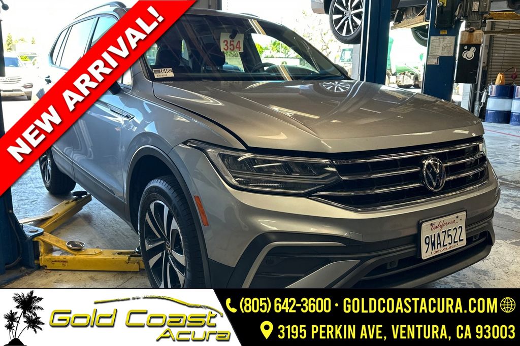 Recent Arrival! This 2022 Silver Metallic Volkswagen Tiguan 2.0T S FWD is well equipped and includes these features and benefits: 3-Row Rubber Monster Mats w/Logo Kit (Set of 5), 3.33 Axle Ratio, 3rd row seats: bench, 4-Wheel Disc Brakes, 4-Wheel Independent Suspension, 6 Speakers, ABS brakes, Air Conditioning, Alloy wheels, AM/FM radio, Brake assist, Bumpers: body-color, Cloth Seating Surfaces, Compass, Delay-off headlights, Driver door bin, Driver vanity mirror, Dual front impact airbags, Dual front side impact airbags, Electronic Stability Control, Emergency communication system: Car-Net, Exterior Parking Camera Rear, First Aid Kit, Forward collision: FCW w/Autonomous Emergency Braking mitigation, Four wheel independent suspension, Front anti-roll bar, Front Bucket Seats, Front Center Armrest, Front reading lights, Fully automatic headlights, Heated door mirrors, Heated Front Bucket Seats, Heated front seats, Heavy Duty Trunk Liner w/VW CarGo Blocks, Illuminated entry, Leather Shift Knob, Low tire pressure warning, Occupant sensing airbag, Outside temperature display, Overhead airbag, Overhead console, Panic alarm, Passenger door bin, Passenger vanity mirror, Power door mirrors, Power steering, Power windows, Radio data system, Radio: Composition Color AM/FM, Rear anti-roll bar, Rear reading lights, Rear seat center armrest, Rear window defroster, Rear window wiper, Remote keyless entry, Roof rack: rails only, Speed control, Speed-sensing steering, Split folding rear seat, Spoiler, Steering wheel mounted audio controls, Tachometer, Telescoping steering wheel, Tilt steering wheel, Traction control, Trip computer, Turn signal indicator mirrors, Variably intermittent wipers, VW Care, and Wheels: 17" 2-Tone Machined Twin 5-Spoke Alloy.